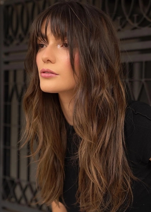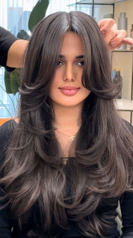 يمنح قص شعر مدرج طويل للشعر مظهرًا حيويًا وانسيابيًا، ويُعد مناسبًا لكل من ترغب في تعزيز جمال شعرها بطريقة بسيطة وملحوظة في الوقت نفسه.