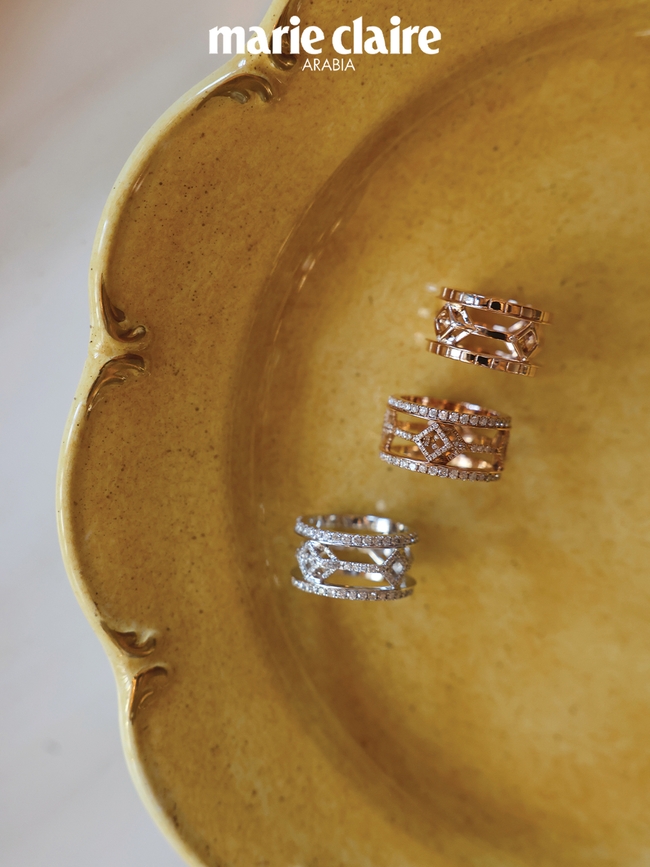 لطالما كانت المجوهرات مرتبطة بالضوء والقوام والعاطفة، وهذه العناصر نفسها هي التي توجّه تصميم منزلي. فأعشق المرايا التي تعكس الصورة إلى ما لا نهاية، والثريات التي تنثر الضوء كالألماس، والأغراض التي تتألّق بمعانيها. وكما أفعل في المجوهرات، أقوم بمزج طبقات من مواد مختلفة مثل المخمل والكريستال والرخام، بحيث تبدو المساحة نابضة بالحياة ومتعدّدة الأبعاد ومشعّة.