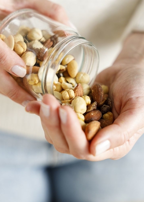من المعروف أن الدهون الصحية والفيتامينات الموجودة في المكسرات تغذي البشرة وتمنحها إشراقة طبيعية. ومن أبرز فوائد المكسرات أنها تساعد على ترطيب البشرة، محاربة علامات الشيخوخة، وتقوية الشعر بفضل المعادن المهمة مثل الحديد والمغنيسيوم.