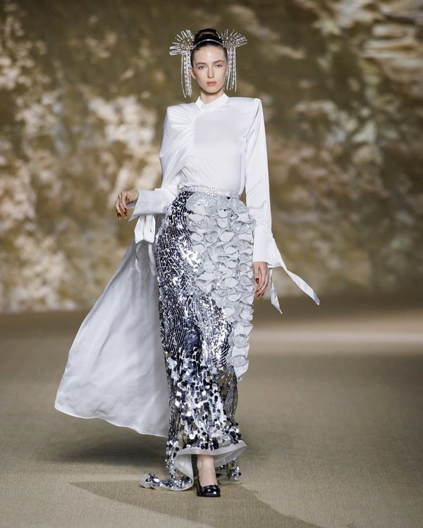اليوم الأول من الفعالية كان بمثابة عرضٍ للأناقة والتنوّع؛ إذ تألقت تيما عابد بمجموعة حملت عنوان "فوضى"، جمعت بين الأبيض والأسود وألوان نابضة بالحياة، مع تصاميم فخمة تعكس القوة والأنوثة في آنٍ واحد، مستخدمةً خامات الساتان والتول المطرز لتقديم رؤية ملكية بامتياز.
