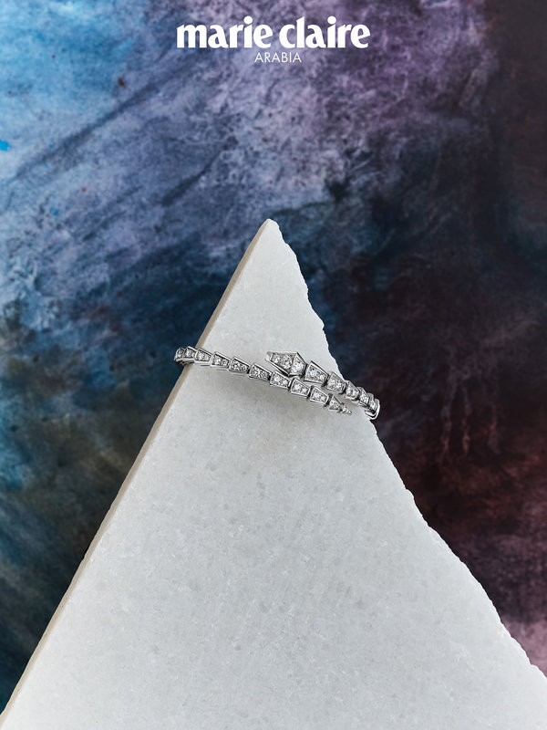 سوار Bvlgari Serpenti Viper بلفّة واحدة من الذهب الأبيض المرصّع بالألماس المرصوف