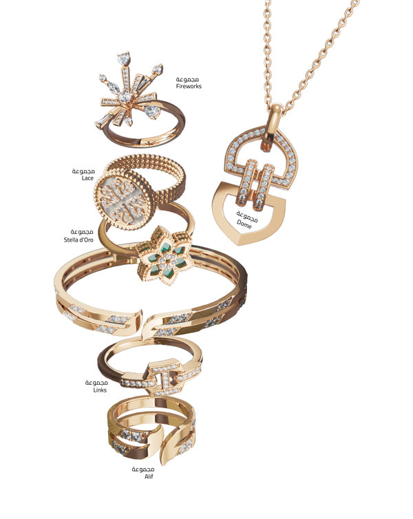 أما مجموعة Links فهي احتفاء بروابط القرب والمحبّة التي تشكّل نسيج حياتنا، مع تصاميم حديثة تعيد ابتكار السلاسل الكلاسيكية بروح أنثوية ومرونة في التنسيق، لتناسب كلّ إطلالة ولكل امرأة تقدّر العلاقات التي تمنح لحياتها معناها الأعمق. وتأتي Fireworks لتجسّد الفرح والبهجة والطاقة المتفجّرة، مستوحاة من الألعاب النارية التي تضيء السماء في اللحظات التي لا تُنسى، مثالية للمرأة التي تضيء المكان بابتسامتها وروحها المتفائلة.