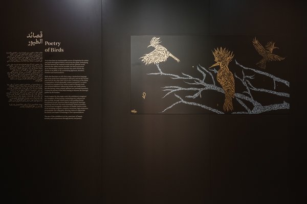 ومن خلال هذه الزيارة، ستلاحظين البنية السردية المستوحاة من The Conference of the Birds لفريد الدين العطار، حيث يتتبع رحلة الطيور نحو الحكمة، مرورًا بطيور خيالية ابتكرها المصمّم الفرنسي Pierre Sterlé وصوراً معاصرة للمصوّر الإماراتي Faisal Alrais.