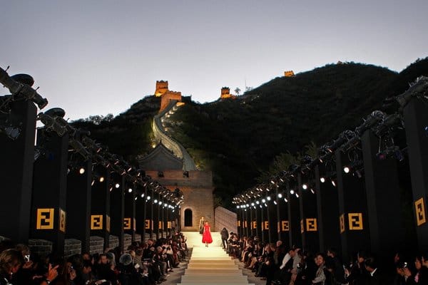 عام 2007، أقام المصمم عرض Fendi في سور الصين العظيم حيث كلّف هذا العمل حوالي 10 مليون دولار أميركي وتخطيط لمدة عام بأكمله بهدف إتمامه على أكمل وجه. وقد طغى على العرض اللون الأحمر وهو يرمز إلى الحظ في الصين وتضمّن 88 تصميمًا وعندما سؤال Silvia Fendi إين يمكن أن يكون العرض المقبل، أجابت مازحةً:" يمكن إلى القمر" بإشارةٍ منها إلى إبداع Karl Lagerfeld.