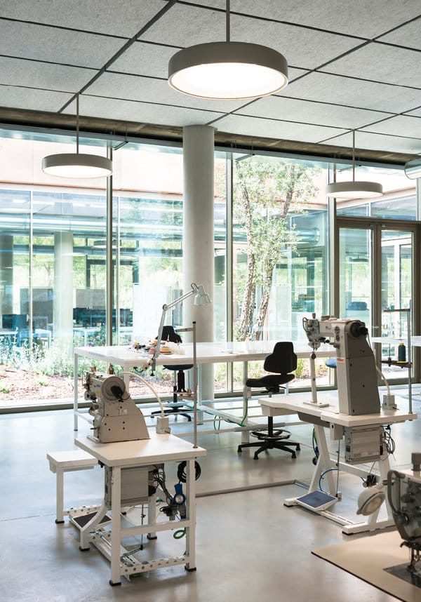 وللسماح لموقع Fendi الجديد بالاندماج مع البيئة، تتماشى الجدران الخارجيّة للمبنى مع مزيج طبيعي من التربة والإسمنت في تدرّج ترابيّ مميّز يعكس ظلال ألوان منحدر تلّ توسكانا ويحتفي بالتقاليد القديمة للموقع. وتماشياً مع مبادئ الاستدامة التي ارتكز عليها تصميم المصنع، تمّ إعادة استخدام الأثاث المنجّد والجلد المحفوظ في المخزن وإعادة تدويره.