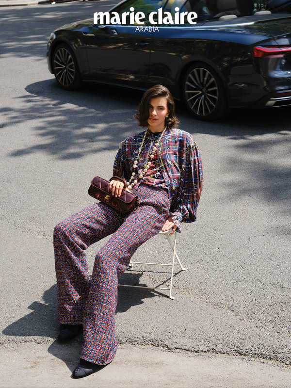 من رصيف إلى آخر، تمضي يومها وكأنّها تغيّر الفصول في كلّ خطوة. تتقدّم على عجل، ثم تتباطأ لتلتقط التفاصيل. تنتقل من قصّة إلى أخرى، ومن مزاج إلى آخر، لكنّها لا تسمح للحكاية أن تفلت من يدها. هي البطلة والمخرجة في آنٍ واحد. والمدينة ليست سوى خلفية تتغيّر بينما تكتب السيناريو الخاص بها، فهي ليست امرأة تسعى وراء الأضواء… هي ببساطة الضوء نفسه. تمشي بخطوات سريعة كأنّها تعرف أنّ الوقت أغلى من أن يُهدر، وتختار ما ترتديه كما تختار كلماتها….. بدقّة! وخلال هذا الشهر، لا تتبع أسلوب الموضة، بل تضع قواعدها الخاصة. كلّ نظرة، كلّ تفصيل، وكلّ التفاتة، هي تذكير واضح أنّها تبتكر مسرحها الخاص.