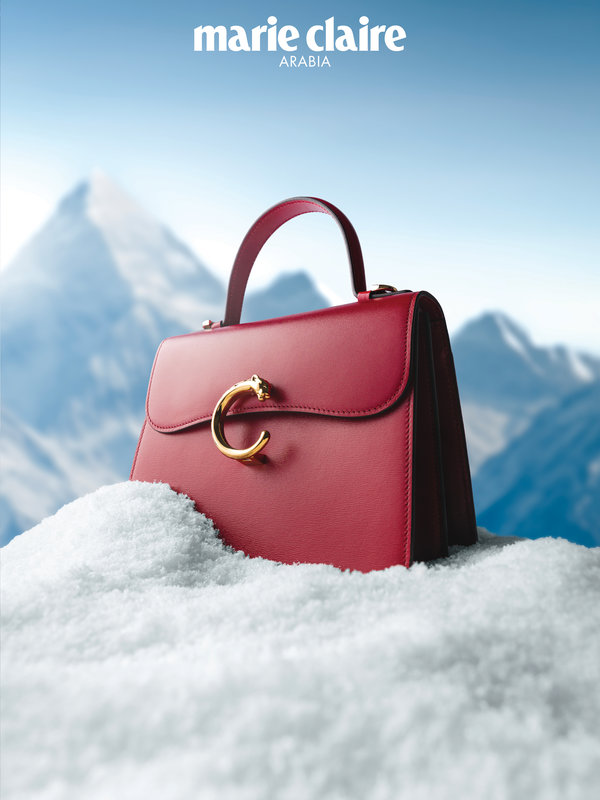 رمز من رموز الأناقة والفخامة يحمل توقيع دار Cartier العريقة. تأتي بلون الأحمر الكرزي من جلد العجل المحبّب، مزوّدة بإبزيم على شكل حرف C يلتفّ حوله رأس فهد ذهبي مطعّم بالمينا السوداء. تصميم يجسّد روح القوّة والأنوثة في آن.