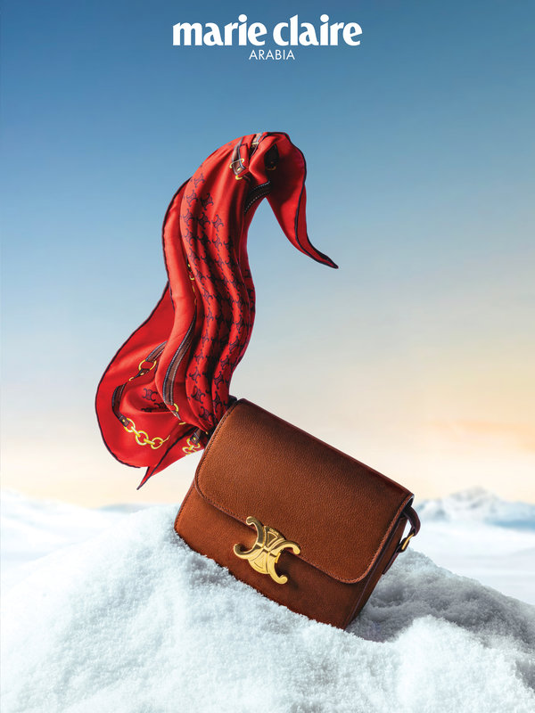قطعة تُجسّد البساطة الباريسية بأناقة لا تزول. مصنوعة من جلد العجل المزيّن بنقشة ناعمة، تتزيّن بإبزيم Triomphe الذهبي الأيقوني الذي يرمز لهوية الدار العريقة. يرافقها وشاح حريري مطبوع بنقشة السلاسل الكلاسيكية باللون الأحمر، ليُضفي لمسة فنية راقية.